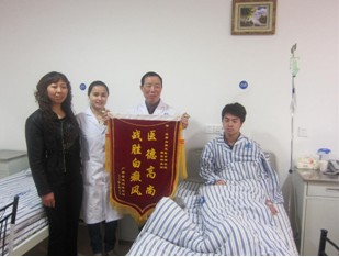 今天,张强母亲特带着锦旗送给林主任向他表示感谢,感谢林主任如此高尚的医德,感谢林主任妙手回春治好了她儿子的白癜风。林永祥主任表示,治病救人、帮助困难患者是每一名医护工作者的职业道德,患者的康复就是他一生永恒的追求。