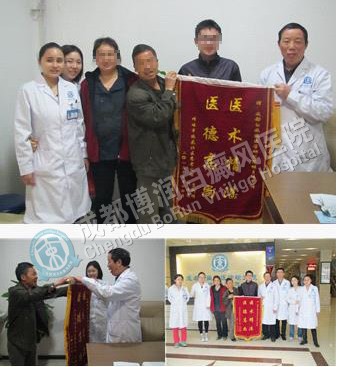近日,康复患者汪某某及其父母带着锦旗来到成都博润白癜风医院门诊室,将一幅绣着“医术精湛,医德高尚”的锦旗送给他的主治医生林永祥主任及医护人员,表达感激之情。